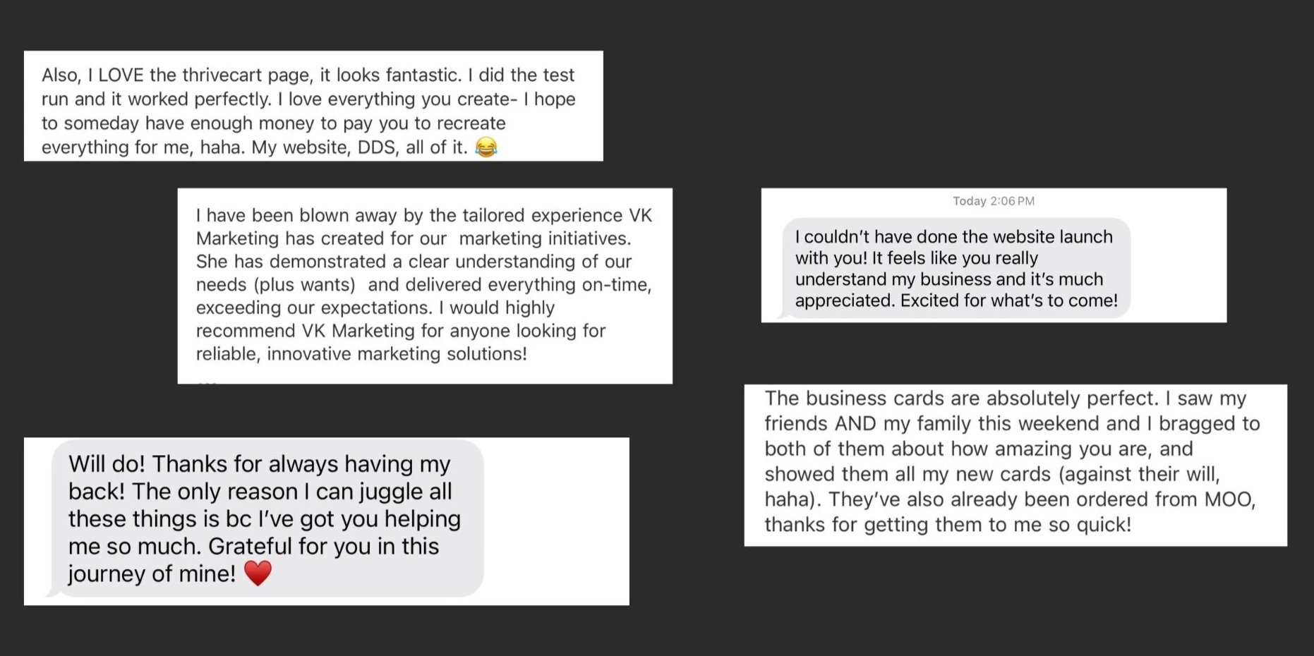 I have been blown away by the tailored experience Vicki has created for our marketing initiatives. She has demonstrated a clear understanding of our needs (plus wants) and delivered everything on-time, exceeding our expectations. I would highly recommend Vicki for anyone looking for reliable, innovative marketing solutions!